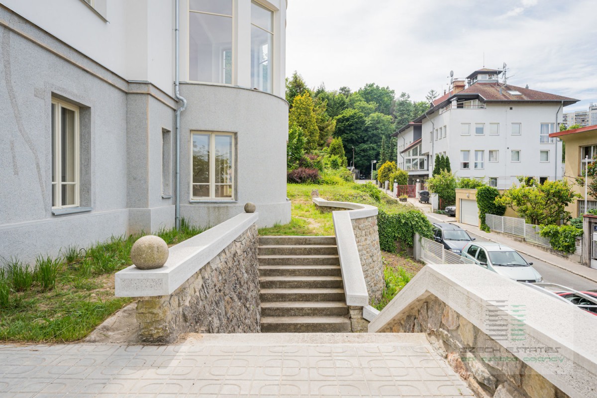 Nabízíme k pornájmu byt v samostatně stojící vile se zahradou, parkovací místo v garáži za poplatek, nově zrekonstruovaný, výtah, parketová podlaha a skříně.
