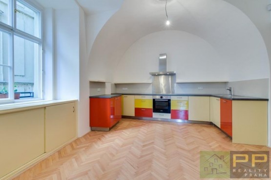 ID: 170501. Nabízíme k dlouhodobému pronájmu pěkný, kompletně zrekonstruovaný byt v historickém centru Prahy hned u Staroměstského náměstí. Byt je o velikosti 3+1+hala, 117m2... v 1. patře cihlového domu. Byt se skládá z velké haly, ze které se vchází do obývacího pokoje a z něj na obě strany do dalších dvou pokojů. Z haly je také vchod do kuchyně. Jeden z pokojů má vstup do koupelny se sprchovým koutem, umyvadlem, pračkou a pl. kotlem. Na podlaze jsou parketová podlaha a dlažba. V kuchyni je zachovalá historická klenba. Byt je nezařízený, pouze nová kuchyňská linka se sklokeramickou varnou deskou, troubou, myčkou nádobí a lednicí s mrazákem. V bytě je zabezpečovací zařízení. Možnost internetové připojeníu od O2 nebo wifi. K bytu náleží terasa pro 2 byty ve vnitrobloku, kterou lze užívat. Tato lokalita nabízí příjemné bydlení v centru Prahy s možností romantických procházek, veškerou občanskou vybaveností a dobrou dopravní dostupností (blízko metro Staroměstská). Měsíční nájem je 28. 000 Kč + služby 1. 000 Kč na osobu + el. energie a plyn, které se převedou na nájemce. Provize RK jen 50%! K nastěhování ihned. Krátkodobé pronájmy pro turisty nelze!