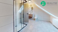 Dispozice a vybavení: Hlavními obytnými prostory jsou rozlehlá kuchyně, ze které se dostanete do všech ostatních místností, vzdušný prostorný obývací pokoj a velká ložnice se šatnou. V bytě se také nachází menší pokoj, který lze využít jako pracovnu nebo pokoj dětský či hostinský. Koupelna je vybavená sprchovým koutem a místem pro pračku i sušičku. Soukromá terasa nabízí klidné posezení.