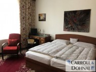 Pokoj - jedno lůžko, psací stůl, nábytek, vestavěná skříň.