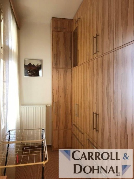 Dále se v bytě nachází další "půl pokoj"(dříve pro služku, dnes šatna či pracovna) opět s úložnými prostory a vstupem na čtvercový balkon.