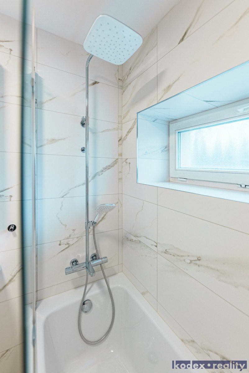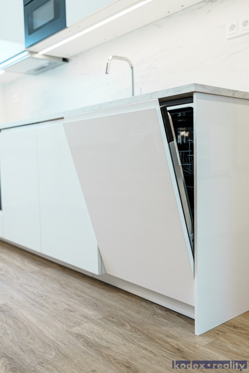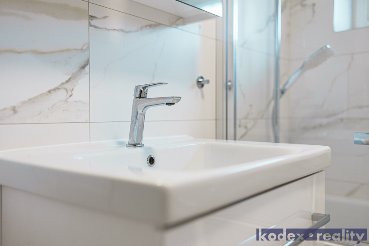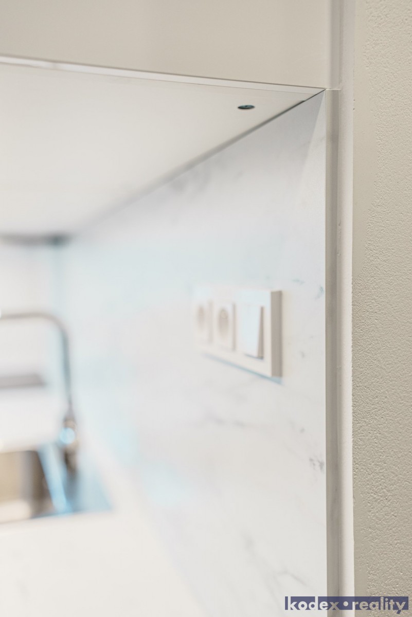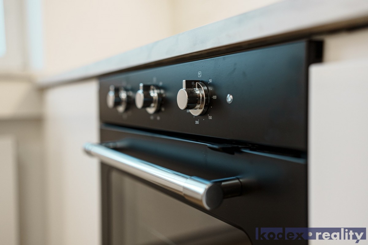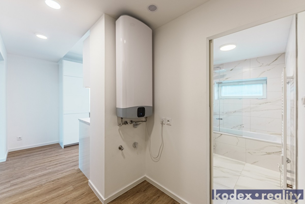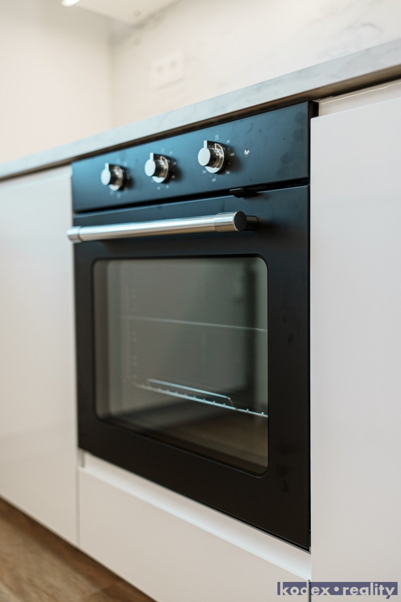 Byt je po kompletní rekonstrukci - nové rozvody elektro, internetové připojeníu a STA včetně zásuvek a vypínačů, LED osvětlení na dálkové ovládání, vinylové podlahy, vchodové i interiérové dveře a nová kuchyňská linka se spotřebiči (el. indukční deska + digestoř, myčka, el. trouba, mikrovlnná trouba) + dvě barové židle, kompletně nová koupelna včetně sanity. Byt se nabízí bez nábytku.
