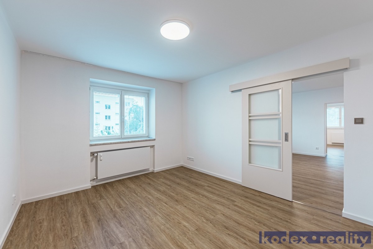 Dispozice: chodba, koupelna s vanou a sociální zařízení WC, kuchyň, obývací pokoj s balkonem, ložnice, dětský pokoj/pracovna a velký sklep v suterénu budovy. Veškerá občanská vybavenost je k dispozici v místě (MŠ, ZŠ, SŠ, MHD přímo před domem, hřiště, parky, úřady apod. ). V bytě je k dispozici elektřina, voda, topení dálkově, ohřev vody boilerem, možnost kabelové TV a vysokorychlostního internetové připojeníu.
