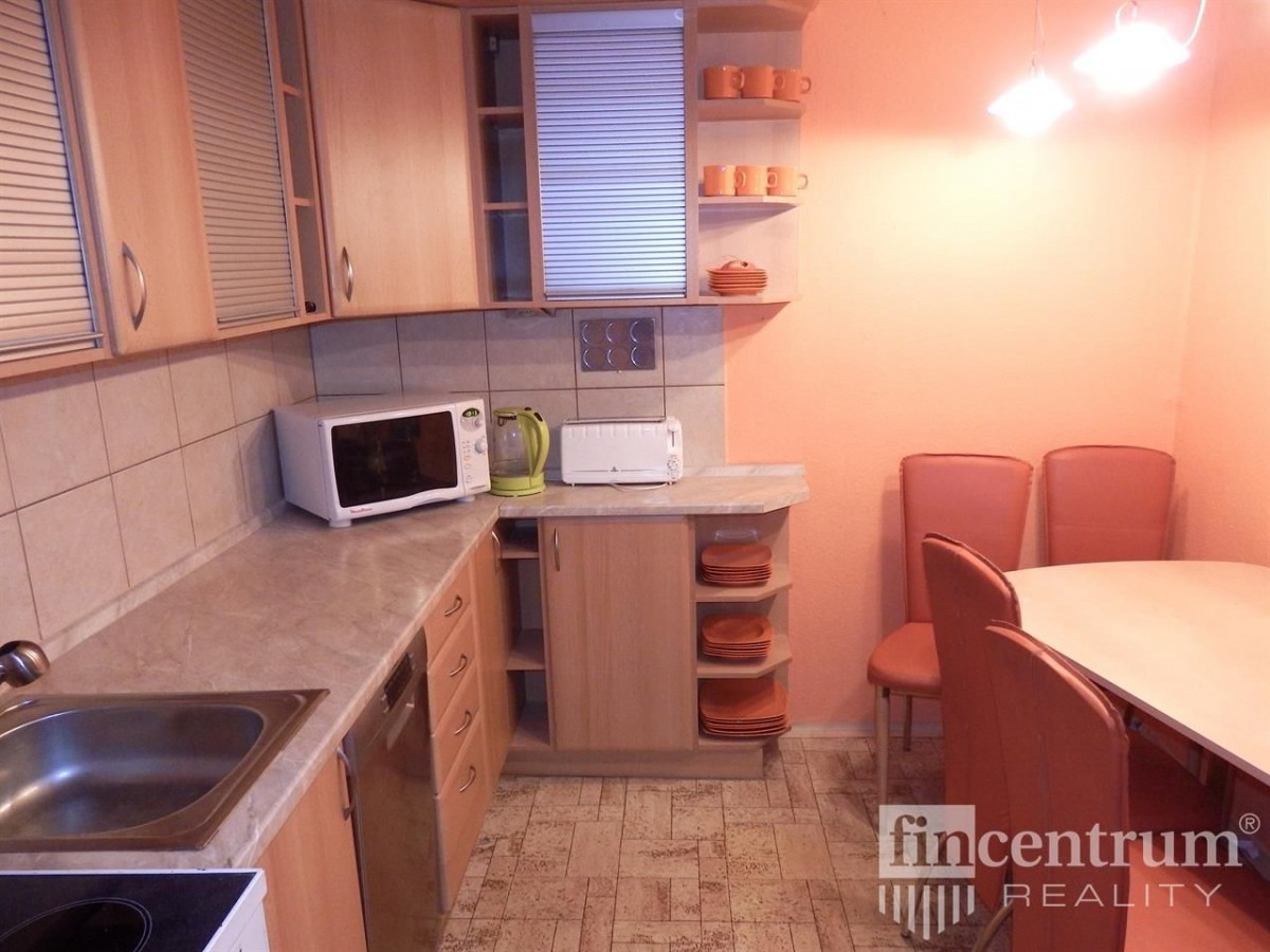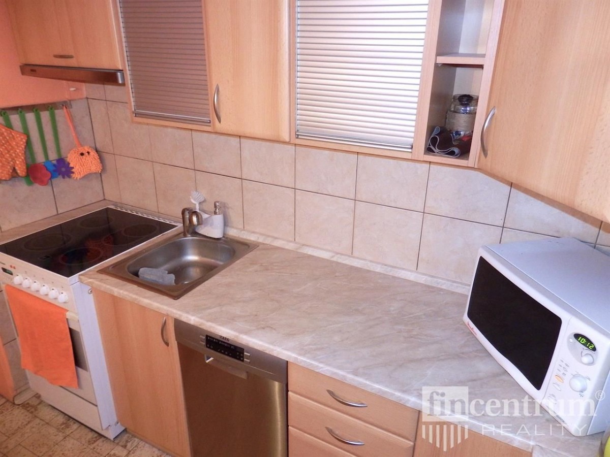 Byt je tvořený 3 pokoji, menší kuchyní, zádveřím, prostornou předsíní, koupelnou a samostatnou toaletou. Všechny místnosti mají samostatné vstupy z předsíně. Pronajímán bude včetně kuchyňské linky se sporákem, myčkou nádobí a digestoří, dále je zde lednice, jídelní stůl, pračka a skříň v předsíni. Byt má plastová okna a v pokojích bylo nově položeno PVC, koupelna a kuchyně jsou po starší rekonstrukci. Vytápění a ohřev vody je centrální dálkový, zaveden internetové připojení a kabelová TV.