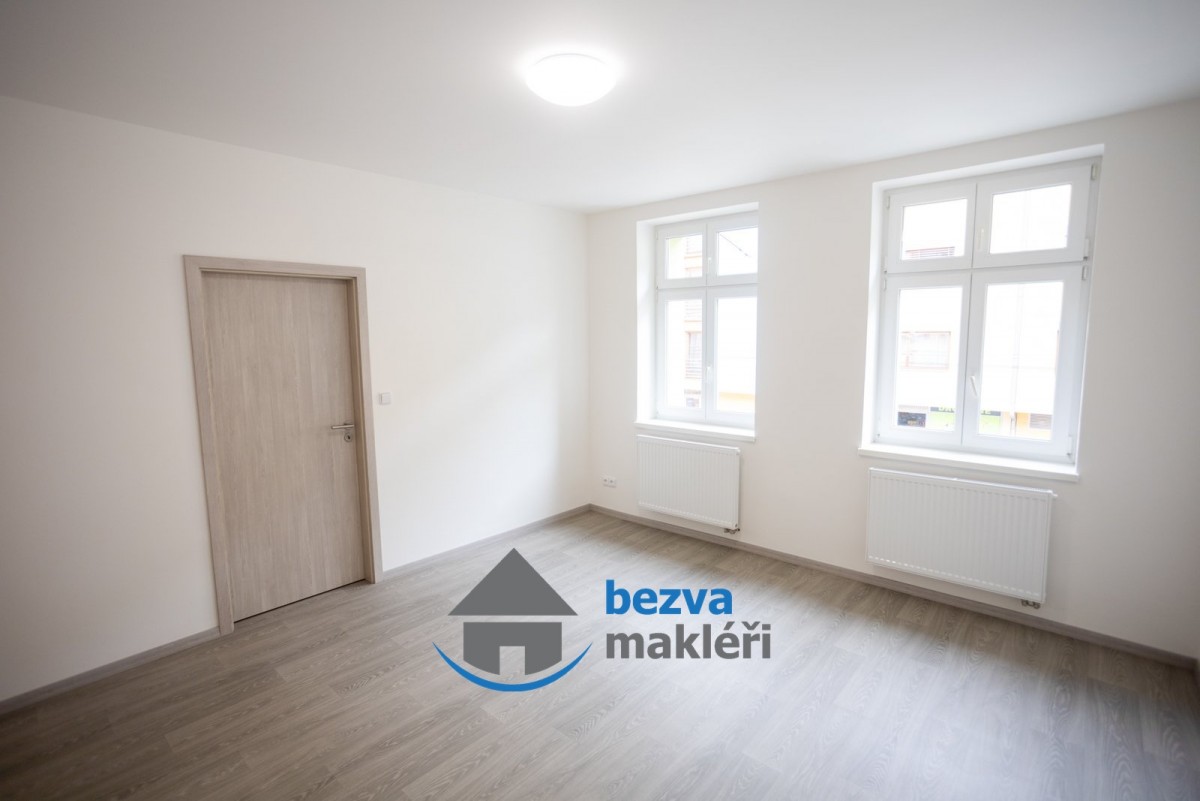 Byt je nově zrekonstruovaný (zděná koupelna opatřená sprchovým koutem,  sociální zařízení WC a umyvadlem se zrcadlem,  na podlaze vinyl, . . . . ).  Nová plastová okna a kuchyňská linka opatřena varnou deskou,  el.  troubou a digestoří.