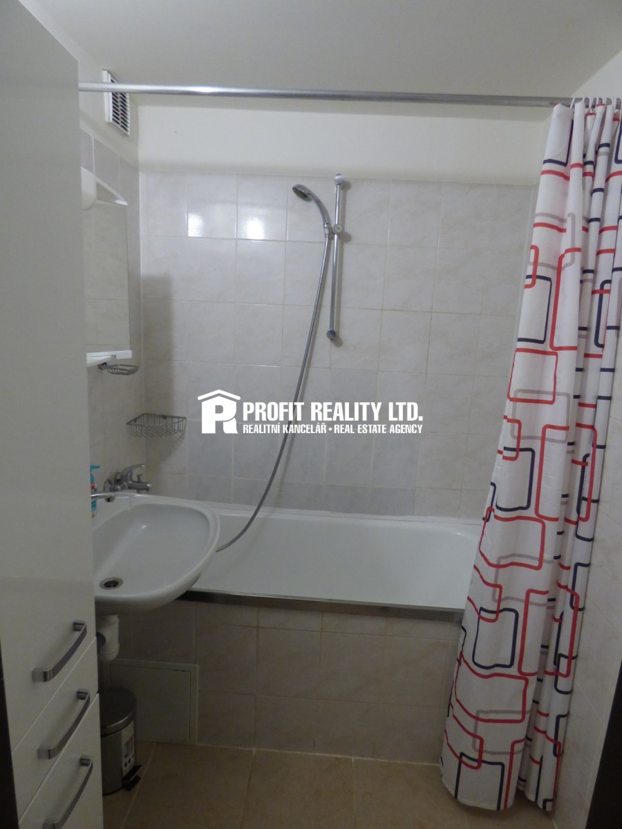 Byt s ústředním vytápěním, plastová okna se žaluziemi, která jsou situována směrem na západ do parku mezi dalšími domy. Kuchyňský kout s kuchyňskou linkou, plynovým sporákem, lednice. Chodba s vestavěnými skříněmi. Koupelna – standartní jádro se sprchovou vanou a automatickou pračkou se spodním plněním umístěnou vedle kuchyňské linky. Dům má dva vchody z toho jeden z parkoviště je bezbariérový. sociální zařízení WC samostatně. V chodbě jsou umístěny vestavěné skříně a komora. V domě je k dispozici výtah, rozvod UPC a internetové připojení O2.