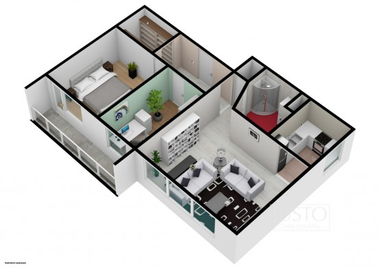 K bytu náleží lodžie a uzamykatelná komora nacházející se na stejném patře.