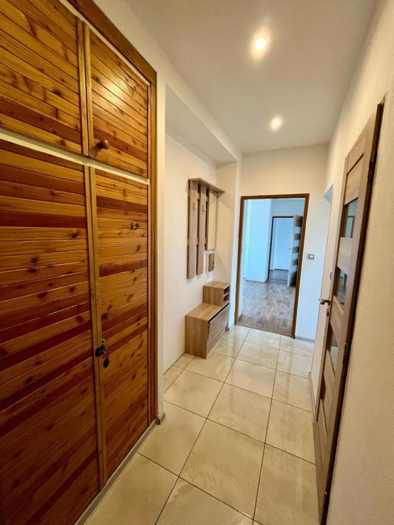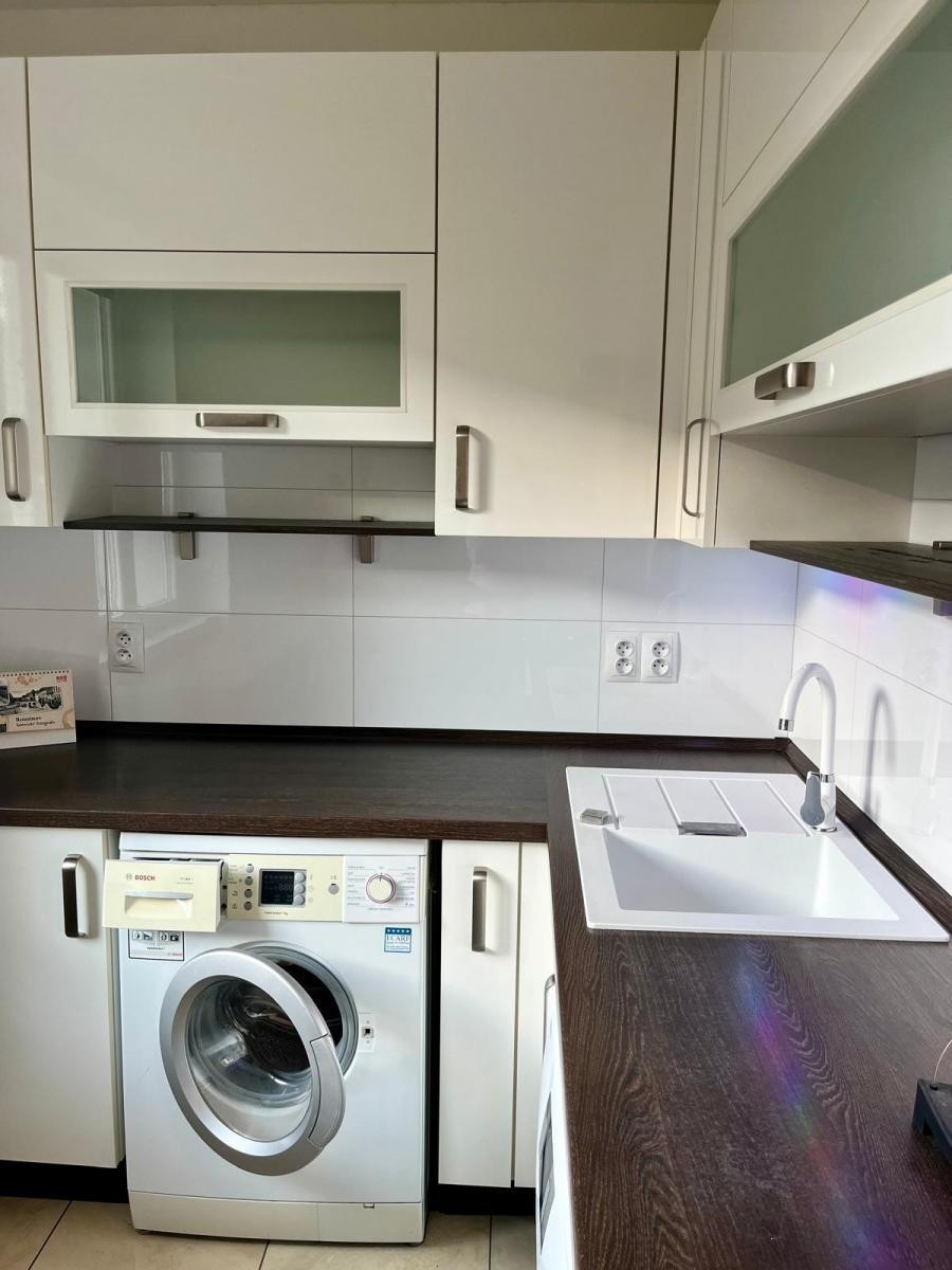 Poctěni výhradním pověření vlastníků, dovolujeme si přinést ojedinělou nabídku pronájmu bytu 3+1 v osobním vlastnictví, lokalizovaném v populárním a velice vyhledávaném umístění, v ...Rousínově. Zdařile rekonstruovaný byt o podlahové ploše 67, 7 m2 + balkon, je situován do 4 NP, t. j. třetího patra bytového domu, který v bezprostřední minulosti taktéž prošel celkovou rekonstrukcí a je součástí velice příjemného prostředí zóny s bytovými domy, okolní infrastrukturou, parkovou úpravou, blízkostí centra města a okolím, umožňujícím aktivitu i odpočinek. Dispozice bytu, jehož rekonstrukce obsahovala m. j. vybudování zděného bytového jádra, snížení stropů, reinstalaci rozvodů elektřiny, vody a plynu, položení podlah ( povrchem je dlažba, respektive PVC - paměťová pěna), je následující : vstupní chodba, nalevo sociální zařízení WC, dále samostatná koupelna se sprchovým koutem, doprava pak kuchyň s jídelní zónou, kuchyňskou linkou na míru, vybavenou spotřebiči, z chodby se též vstupuje do obývacího pokoje s balkónem, na který bylo dovedeno osvětlení a taktéž elektrická zásuvka, z pokoje je vstup do ložnice a dětského pokoje. V domě tradiční infrastruktura podobných domů, samostatný sklep, kočárkárna, kolárna, dům vytápěn centrálním topením, samostatným pro dům, kotelna v suterénu. V domě zaveden a po bytech rozveden, internetové připojení v optické síti. Okolí domu velice příjemně překvapuje. Bohatý dostatek parkovacích míst, obchod s potravinami v bezprostředním dosahu, vzrostlá zeleň parkového typu, dětské hřiště s lanovkou, malá vzdálenost do centra a do školy a školky, cca 150 metrů od domu stačí projít pod viaduktem a ihned nás obklopuje příroda, vybízející k aktivitě, či odpočinku. Náklady na bydlení cca 5000 Kč ( včetně FO ) + spotřeba elektrického proudu, je součástí měsíční platby a je majitelem jednou ročně vyúčtována. Jedná se o ojedinělou nabídku vkusně rekonstruovaného bytu, ve velice vyhledávané lokalitě města, umístěného nedaleko Brna, města s plnou občanskou vybaveností a exitem z dálnice, nabídku pro klienty, kteří hledají kvalitu bydlení. Přejeme šťastnou ruku a tato nabídka právě toto splňuje. Fotografie z interiéru pořízeny v době, kdy byl byt zařízen. Nyní ze zařízení pouze kuchyňská linka. Vratná jistota - 20. 000 Kč, zprostředkování - 20. 000 Kč. Prohlídky po dohodě o termínu možné ihned.