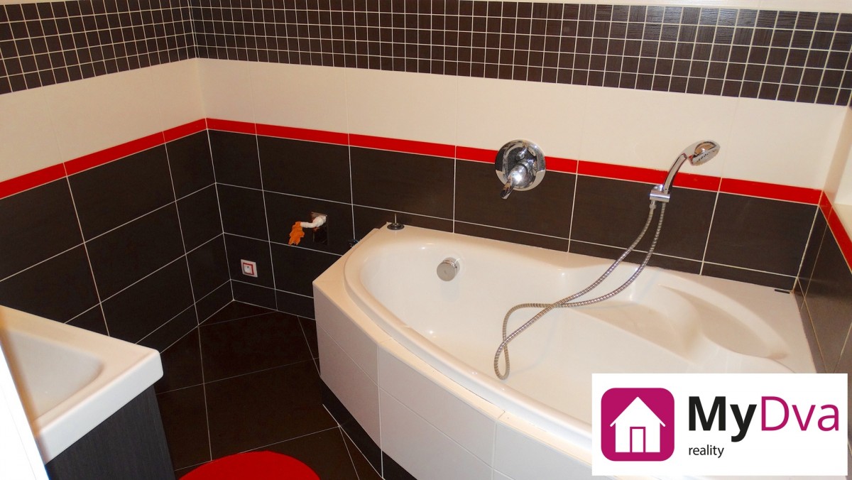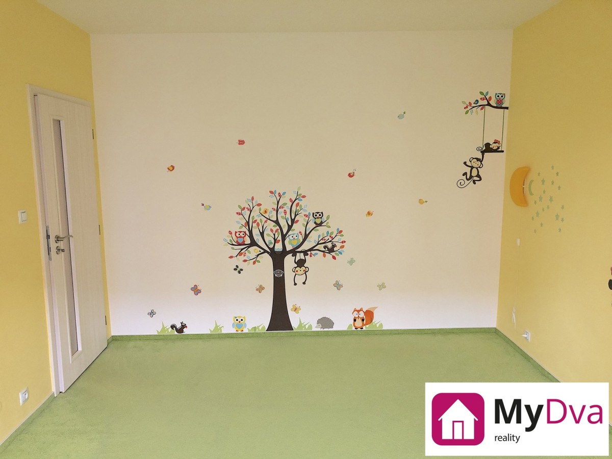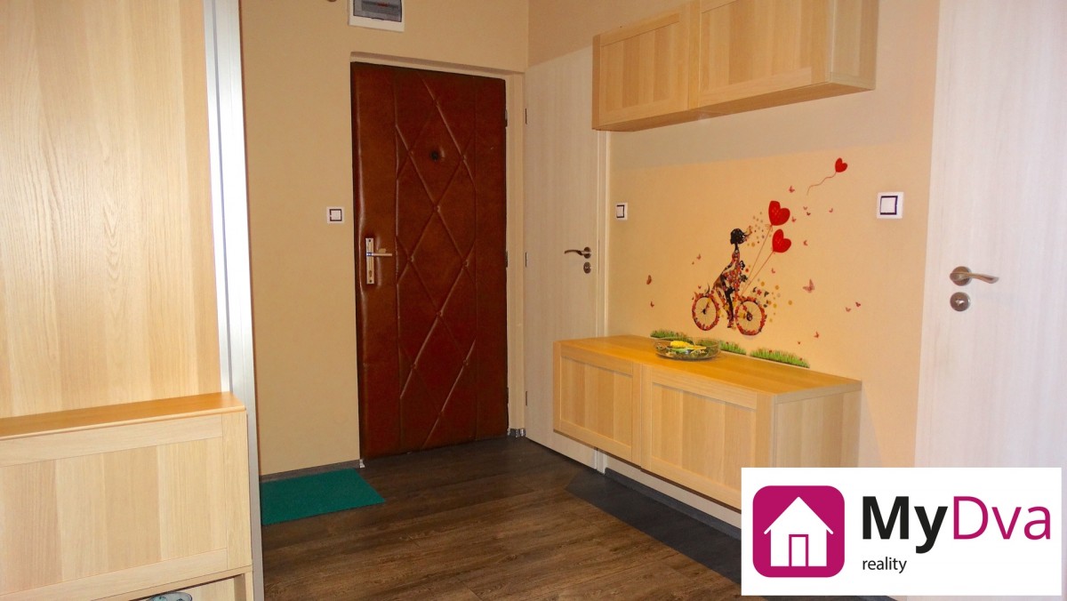 Po vstupu do bytu se ocitneme v rozlehlé předsíni, kde jsou umístěny prostorné vestavěné skříně. Z předsíně dále můžeme vstoupit na oddělenou toaletu, hned vedle do moderně zařízené koupelny s rohovou vanou, umyvadlem a přípojkou na pračku. Na protější straně předsíně nalezneme vstupy do ložnice a dále do dětského pokoje, ze kterého lze vstoupit na prostornou lodžii situovanou do klidného vnitrobloku. Posledním vstupem se dostaneme do obývacího pokoje, který je propojen s plně vybavenou kuchyní.