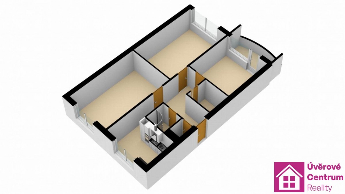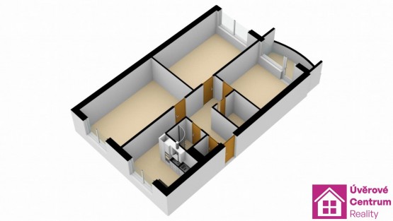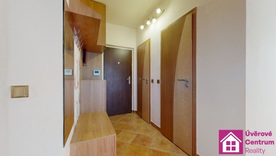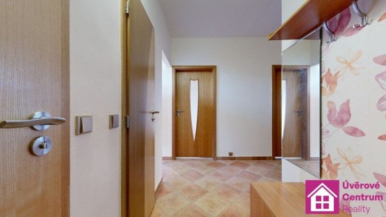 Dispozice bytu: předsíň, toaleta, koupelna se sprchovým koutem, kuchyň, pokoj, šatna, pokoj, pokoj vstupem do lodžie a sklepní kóje. Pokoje jsou neprůchozí - viz. půdorys.