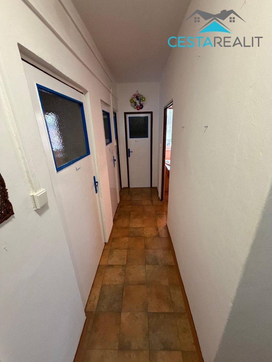 Byt je o celkové užitné ploše 81 m². Disponuje pr...ostornými pokoji, dvěma špajzy, koupelnou s oknem a dvěma balkony. Pokoje jsou neprůchozí a tím je vhodný byt pro pár či rodinu s dětmi. K dispozici jsou také dva sklepy a pěkná zahrádka. Byt se na haluí v blízkosti fotbalového hřiště, takže můžete sledovat vaše děti přímo s bytu.
