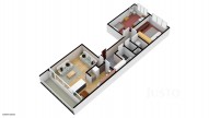 ● 1. ložnice s prostorným dvojlůžkem (200 cm x 200 cm), šatní skříní a komodou,