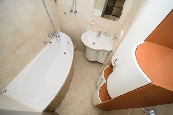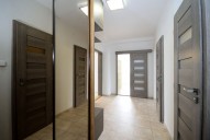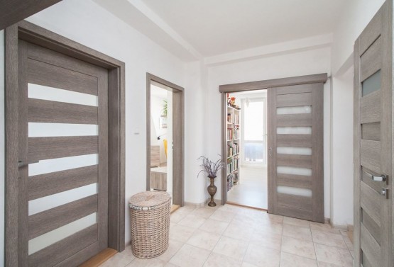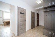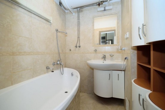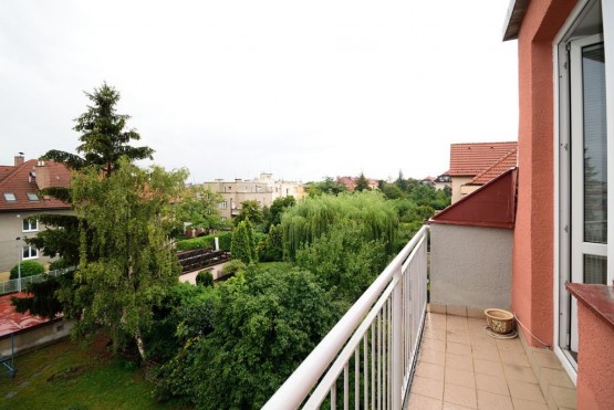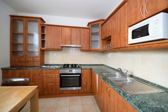 Moderní k...uchyně včetně elektrospotřebičů (lednice s mrazničkou, plynový sporák, elektrická trouba, myčka). Koupelna s velkou rohovou vanou, toaleta zvlášť. K dispozici je také pračka. Podlahové krytiny - PVC, dlažba a plovoucí podlaha. Ústřední topení. 2 krát balkon, 1 s výhledem do zeleně. K bytu náleží sklep a komora - dostatek úložného prostoru. Garáž je společná se sousedem.