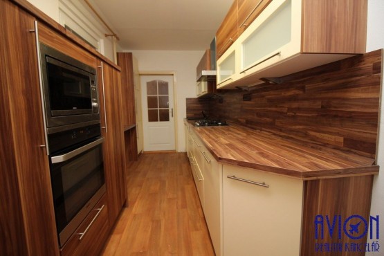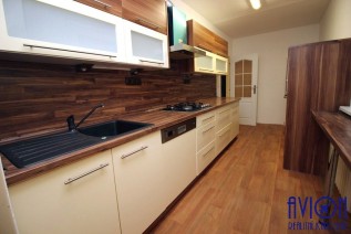 Byt je nově vymalova...ný, v jednom pokoji je úplně nová plovoucí podlaha. Prostorné neprůchozí pokoje - obývací pokoj 23 m2, pokoje 17 m2 a 14 m2, kuchyň 11 m2. Kuchyň je vybavena kuchyňskou linkou s plynovou varnou deskou, troubou, mikrovlnnou troubou, myčkou a digestoří. Koupelna s rohovou vanou, samostatná toaleta. V předsíni je velká vestavěná skříň, věšáková stěna a botník. Podlahy plovoucí a PVC.