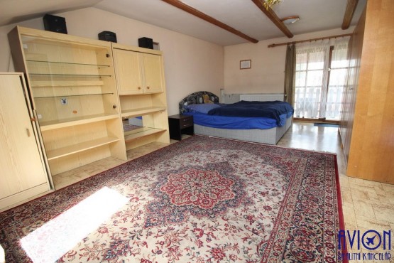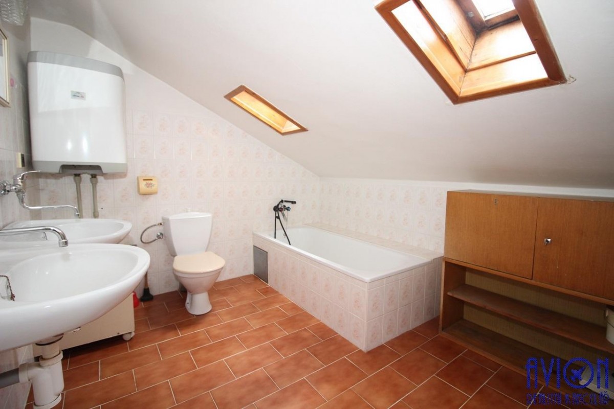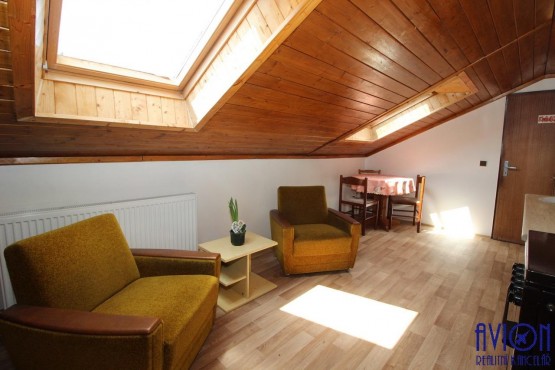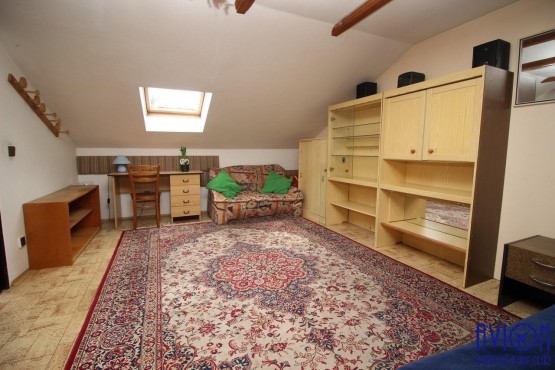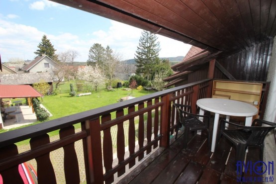 Byt se nachází v 1. patře, skládá se ze 3 neprůchozích pokojů (vý...měra 12, 14 a 23 m2), kuchyně, lodžie s otevřeným výhledem do zahrady a do krajiny. K dispozici je koupelna s toaletou, další samostatný sprchový kout a druhá samostatná toaleta. Vybavení bytu dle foto, lze pronajmout i bez vybavení. Vytápění automatickým kotlem a radiátory. Samostatným vstup do bytu. K dispozici je velká zahrada s venkovním sezením a parkování přímo na pozemku.