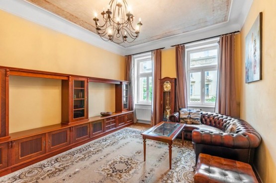 Pronájem stylového, kompletně vybaveného bytu 3+1 (94 m2) ve 2. patře secesního domu přímo u tramvajové zastávky na Královských Vinohradech, situovaného mezi náměstím Mír...u a Jiřího z Poděbrad.