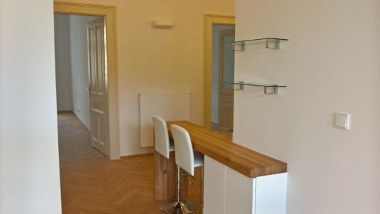 Nabízíme k pronájmu nezařízený byt 3+kk (100 m2) ve 3. patře činžovního domu v ulici Vinohradská na Praze 2. Byt i dům je po kompletní rekonstrukci včetně nového vý...tahu. Byt nabízí vstupní předsíň s vestavěnou skříní, prostorný obývací pokoj, kuchyňský kout, 2 ložnice situované do dvora, 2 koupelny, technickou místnost s pračkou a sušičkou, sklepní kóji a 1 parkovací stání ve dvoře. K dispozici nová kuchyňská linka s vestavěnými spotřebiči značky Siemens, jedna koupelna s vanou, toaletou a bidetem, druhá se sprchovým koutem, toaletou a bidetem. Byt je nezařízený. Vytápění pomocí plynového kotle, na podlahách parketová podlaha a kamenná dlažba. K dispozici UPC a satelit. Dům je cca minutu chůze na stanici metra nám. Jiřího z Poděbrad.