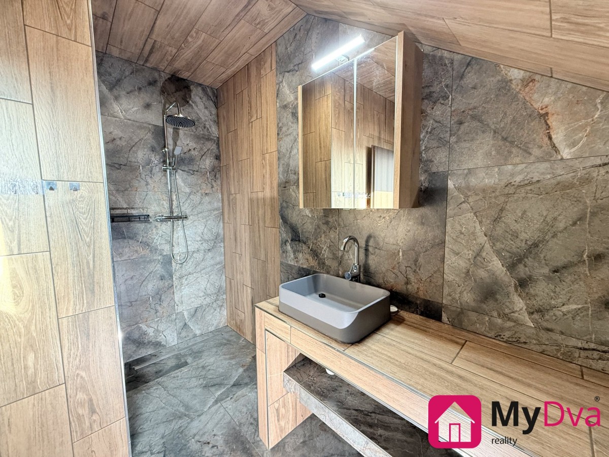 Luxusní Koupelna: Designová koupelna se sprchovým koutem a samostatné sociální zařízení WC přinášejí eleganci a pohodlí.