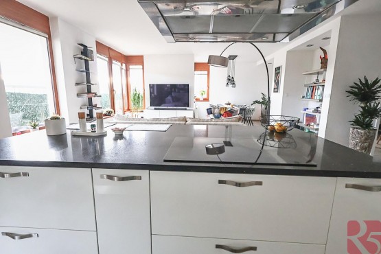 Byt má prostorný obývací pokoj s jídelnou má 48m2 a k dispozici je plně vybavená kuchyňská linka, hlavní ložnici s koupelnou (sprchový kout, toaleta) a vestavěnými skříněmi, druhou ložnici, samostatnou koupelnu (vana), samostatnou toaletu, technickou komoru a otevřenou vstupní halu s vestavěnými úložnými prostory. Terasa je přístupná z obývacího pokoje a hlavní ložnice. Nábytek je stávajícího nájemníka.