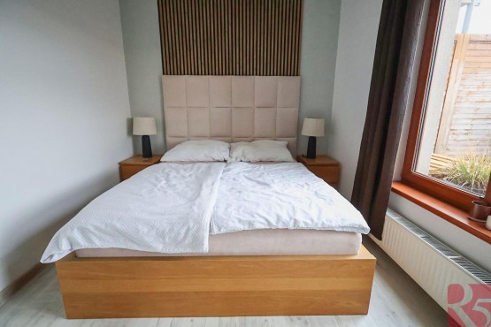 Kvalitní laminátové podlahy, dlažba, bezpečnostní vstupní dveře, žaluzie, centrální vytápění, pračka, sušička, myčka, mikrovlnná trouba, kabelové připojení Vodafone. V ceně ja zahrnuto 1 garážové stání.