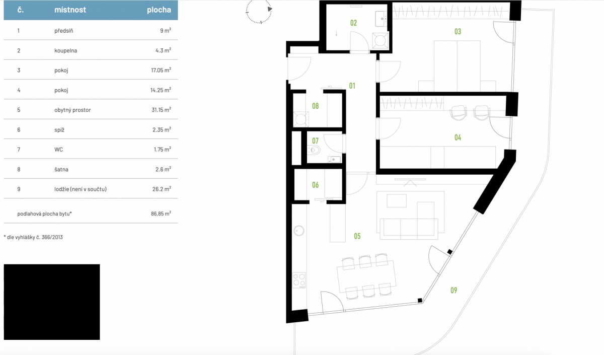 Nabízíme k pronájmu luxusní byt o dispozici 3+kk o celkové podlahové ploše 86, 8 m and sup2; s prostornou lodžií 26, 2 m and sup2;, situovaný ve 3. patře novostavby včetně výta...hu v prestižní rezidenci Thera.