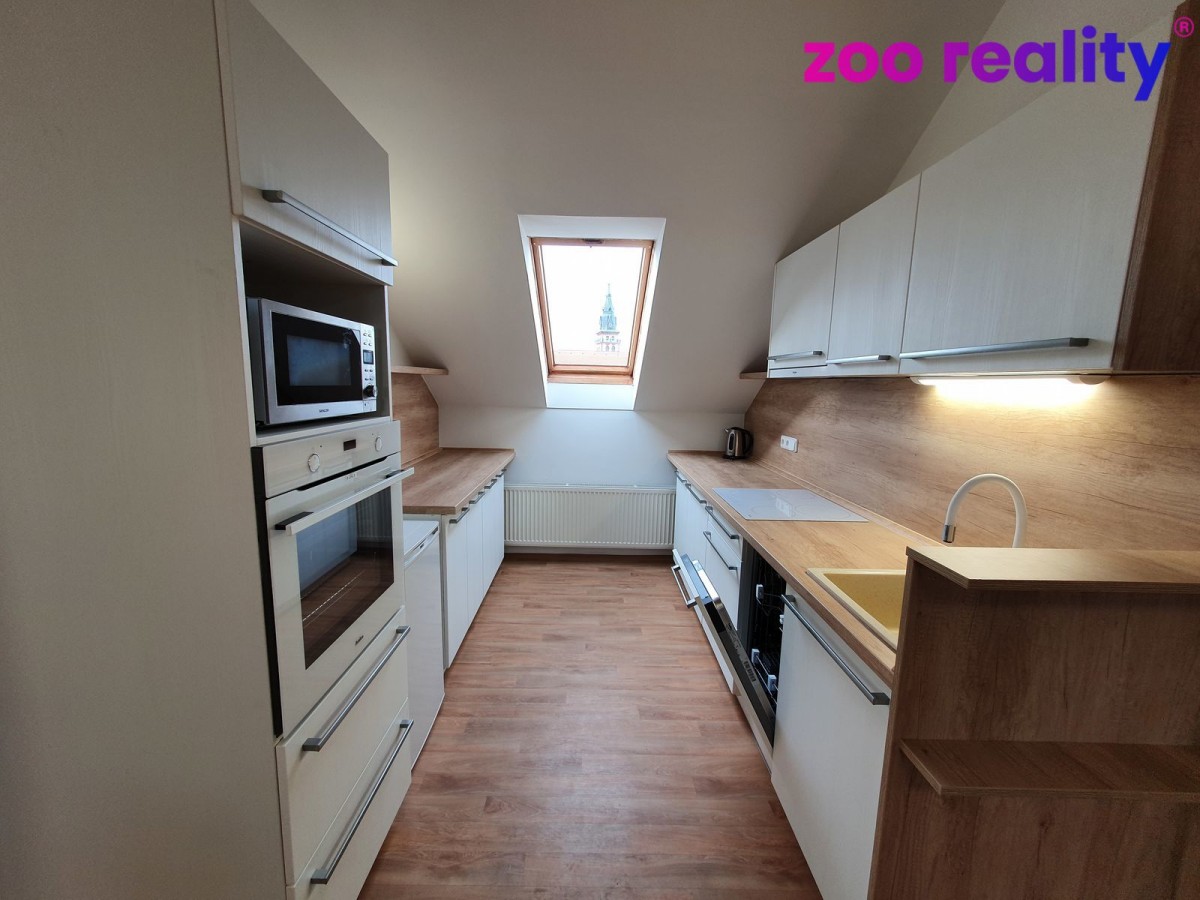 Nabízíme Vám pronájem podkrovního bytu s funkční klimatizací v Nerudově ulici v Chomutově. Dispozice bytu 3+kk s podlahovou plochou 110 m2, nachází se ve 3. patře b...ytového domu, který je dobře udržován. K dispozici máte přidělené 1 parkovací místo za domem a sklepní prostor. Byt prošel v roce 2022 celkovou rekonstrukcí podlah, stěn, osvětlení a nová kuchyňská linka. V koupelně je vybudovaný sprchový kout se skleněnými dveřmi, sociální zařízení WC, prostor na pračku a plynový kotel Buderus, kterým se zajišťuje vytápění a ohřev teplé vody. Měřidla energií (elektroměr, plynoměr a podružný vodoměr) jsou samostatně k bytu. V kuchyni je nová kuchyňská linka s vestavěnými spotřebiči, myčka, indukční varná deska, horkovzdušná trouba, dále mikrovlnná trouba, lednice. Na celé ploše bytu je nové PVC, nové osvětlení a video telefon. Byt je částečně vybaven šatními a sektorovými skříněmi, jídelní stůl se šesti židlemi, dvě kožená křeslo, skleněný konferenční stolek, klimatizací. Měsíční nájem činí 13. 500. Kč a k tomu se hradí záloha na vodu 550, - Kč za osobu a odvoz odpadu 181, 50 Kč na byt. Platba nájemné vždy do 25. dne předcházejícího měsíce na měsíc následující. Zálohu na plyn a elektřinu si nájemce převede na sebe. Kauce – dva nájmy při podpisu smlouvy a jeden nájem je poplatek za prostředkování. Majitel požaduje slušné a pracující nájemníky. Byt je ihned k dispozici.