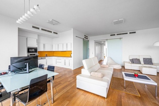Pronájem k dispozici od září zařízeného, klimatizovaného bytu 3kk s terasou (125, 7m2) s neopakovatelnými výhledy do dalekého okolí, parkovacím místem, situovaného v 11. podlaží moderního projektu Rezidence Kavč...í Hory s podzemním parkováním, 24h recepcí, fitness centrem, ostrahou a kamerovým systémem. Klidná lokalita v blízkém dosahu plné občanské vybavenosti a v rychlé dostupnosti do centra, v sousedství Centrálního parku a areálu ČT, v pěším dosahu stanice metra Pankrác a nákupního centra Arkády Pankrác.