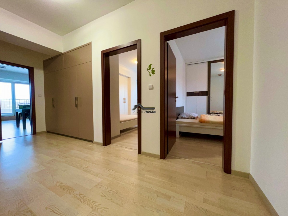 Nabízíme k pronájmu moderní, prostorný byt 3+kk s větší terasou o velikosti 17m2, umístěný ve 2. patře bytového domu včetně výtahu. Byt je prostorný a slunný, s v...lastním parkovacím místem v kryté garáži pod domem. Výhodou je, že se jedná o vybavený byt, kde jsou součástí vybavení postele s matracemi, vestavěné skříně, pračka, kuchyňská linka s vestavěnými spotřebiči a vybavení terasy. Dále je možné zanechat sedací soupravu. V bytě je prostorná koupelna se sprchovacím koutem a vanou, samostatné sociální zařízení WC s malým umyvadlem. V celém prostoru je podlahové vytápění, plus žebříkové topení v koupelnách. Celková dispozice se skládá ze dvou prostorných samostatných pokojů, velkého obývacího pokoje s kuchyňským koutem, předsíně, technické místnosti a již zmiňované koupelny a sociální zařízení WC. K bytu dále náleží větší sklep. Z terasy je hezký výhled a jdou vidět i Beskydy. Celý objekt je monitorovaný. Jedná se o rezidenční bydlení a je možné zde využívat služby jako je úklid bytu, praní, převlékání ložního prádla. Byt bude je volný ihned. Doporučuji prohlídku.