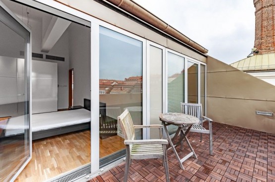 Pronájem kompletně vybaveného, luxusního mezonetového bytu 3kk s te...rasou s dvěmi parkovacími místy, situovaného ve 3. patře komplexu Rezidence Korunní Dvůr na Královských Vinohradech.