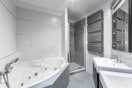 K vysokému standardu kompletního vybavení patří kompletně vybavená kuchyňská linka v bílém lesklém designu včetně elektrospotřebičů MIELE, inteligentní systém ovládání domácnosti s možností řízení přes iPad, chlazení, dřevěné podlahy, vnitřní parapety, podlahy z masivního teakového dřeva, vlastní plynový kotel, velkoformátová dlažba a obklady, luxusní moderní kuchyně včetně elektrospotřebičů MIELE, italským koupelnovým nábytkem s rohovou vanou a impozantní skleněnou stěnou v jídelní části v temně modrou skleněnou stěnou. kuchyně v bílém designu se spotřebiči MIELE, vinotéku, impozantní skleněná stěna v jídelní části v temně modrém odstínu, designové osvětlení v celém bytě, alarm. Všechny pokoje mají přímý vstup na terasu.