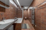 Mezonetový byt je částečně vybaven, připraven k okamžitému nastěhování. Vybavení zahrnuje dřevěné podlahy, vlastní plynový kotel, novou pračku a sušičku AMG, koupelnový nábytek s vanou, mozaikovou dlažbu a obklady v koupelně a na toaletě, plně vybavenou kuchyň se všemi spotřebiči a nádobím, jídelní kout s posezením pro šest osob, rozkládací pohovku s designovými křesílky v hnědém odstínu, TV stolek, dominantní schodiště v obývací části s výstupem do odpočinkové zóny bytu se dvěma ložnicemi, nové postele včetně nových matrací. Designové osvětlení a klimatizace v celém bytě, alarm.