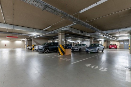 Cena nájmu zahrnuje vybavení včetně parkování pro dva automobily v garážích v suterénu domu příslušných k bytu .