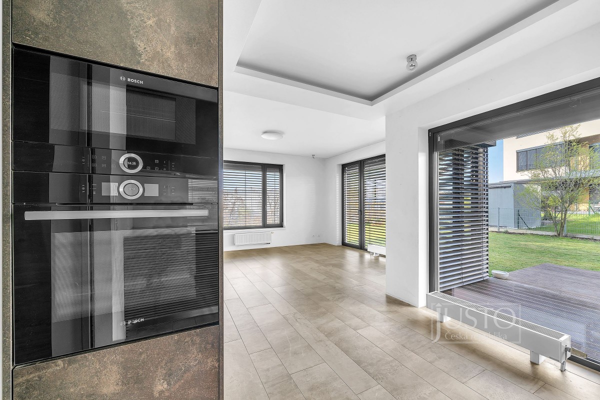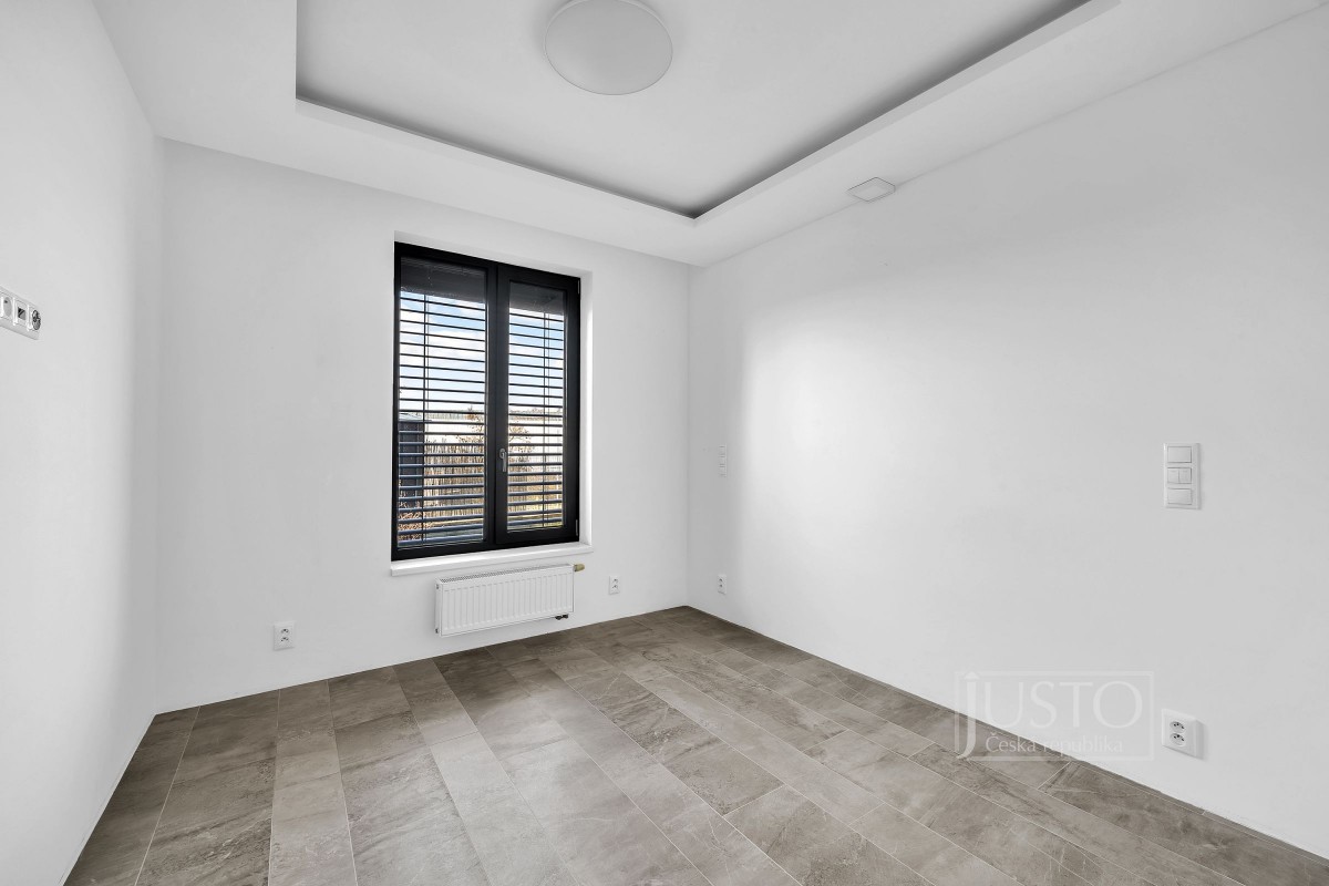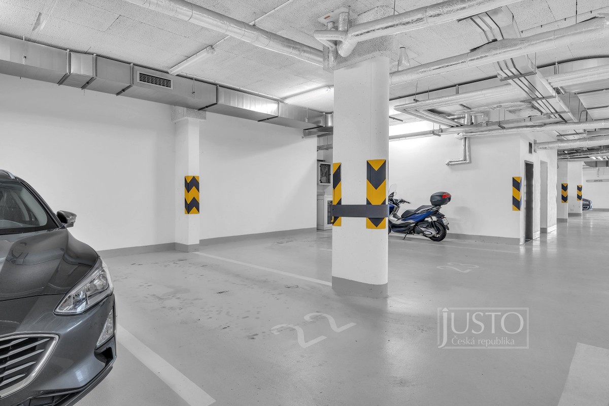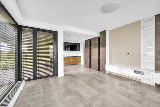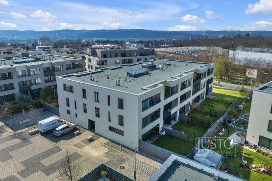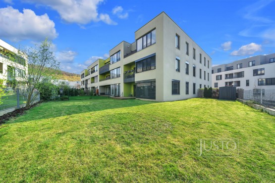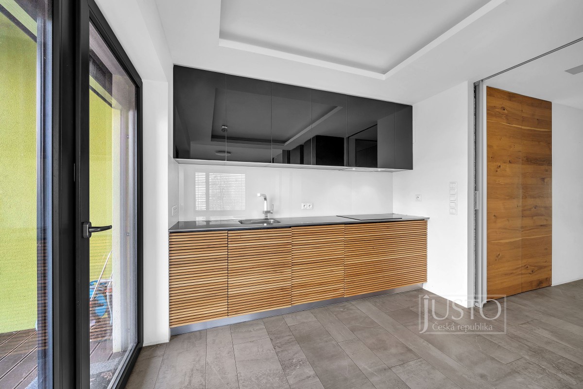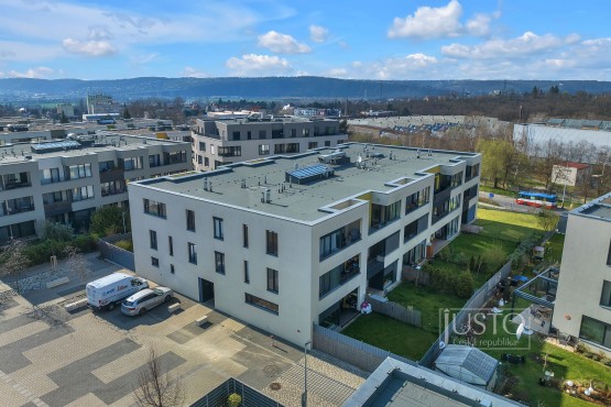 V zastoupení majitele si vám dovolujeme nabídn...out pronájem exkluzivního bytu (74m²) v domě z roku 2015 v ulici Na Komořsku. Součástí bytu o dispozici 3+kk je velký uzamykatelný sklep (4. 6m²), kryté garážové stání a terasa s předzahrádkou (180m²).