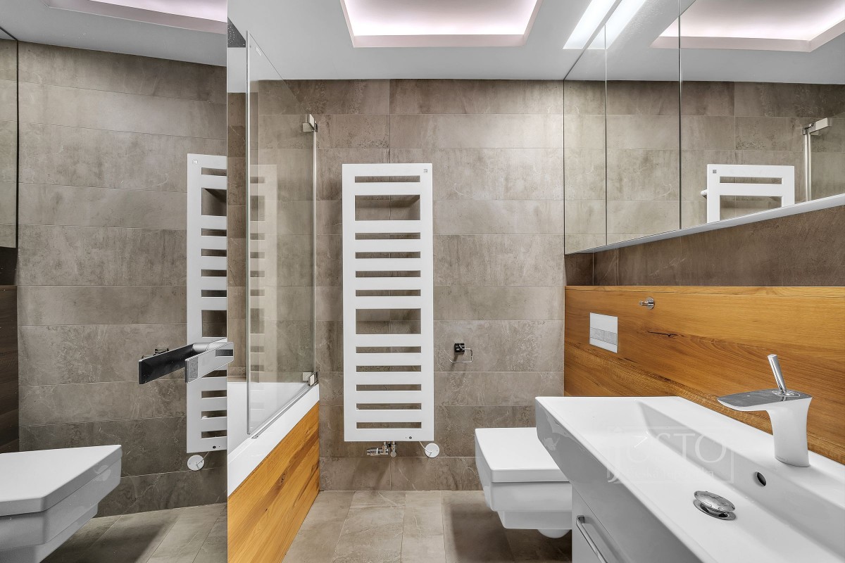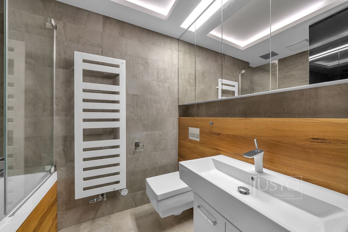 - koupelnou vybavenou vanou, umyvadlem a toaletou