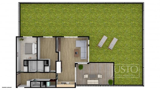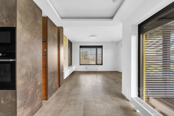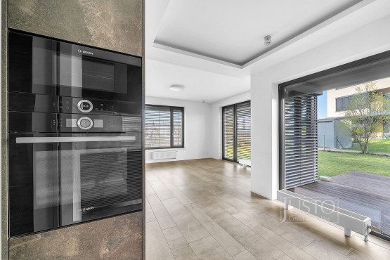 - obývacím prostorem jehož součástí je kuchyň s kuchyňskou linkou s elektrospotřebiči (sklokeramická deska, el. trouba, lednice s mrazákem, myčka)