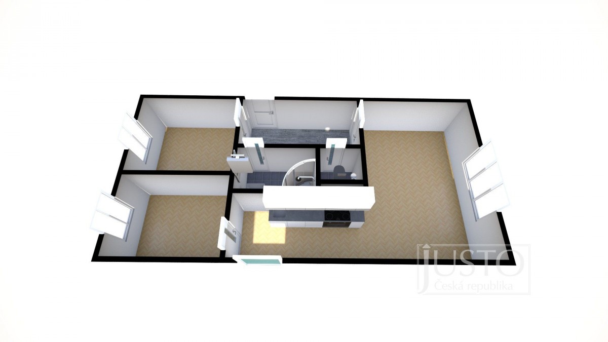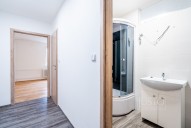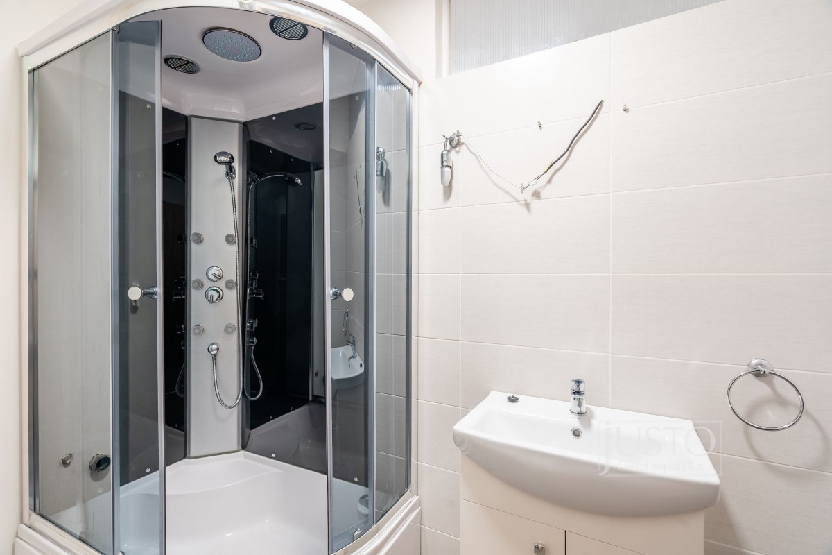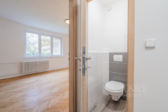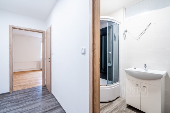 Byt je po kompletní rekons...trukci, zděná koupelna se sprchovým koutem, přípojka pro pračku. Samostatná toaleta. Podlahy jsou vinyl a parketová podlaha. Kuchyňská linka s vestavěnou troubou a sklokeramickou deskou. Nové společné prostory domu, vstup na čipy, objekt chráněn kamerovým systémem. K bytu náleží 2 sklepní kóje.
