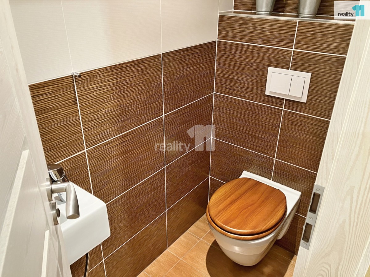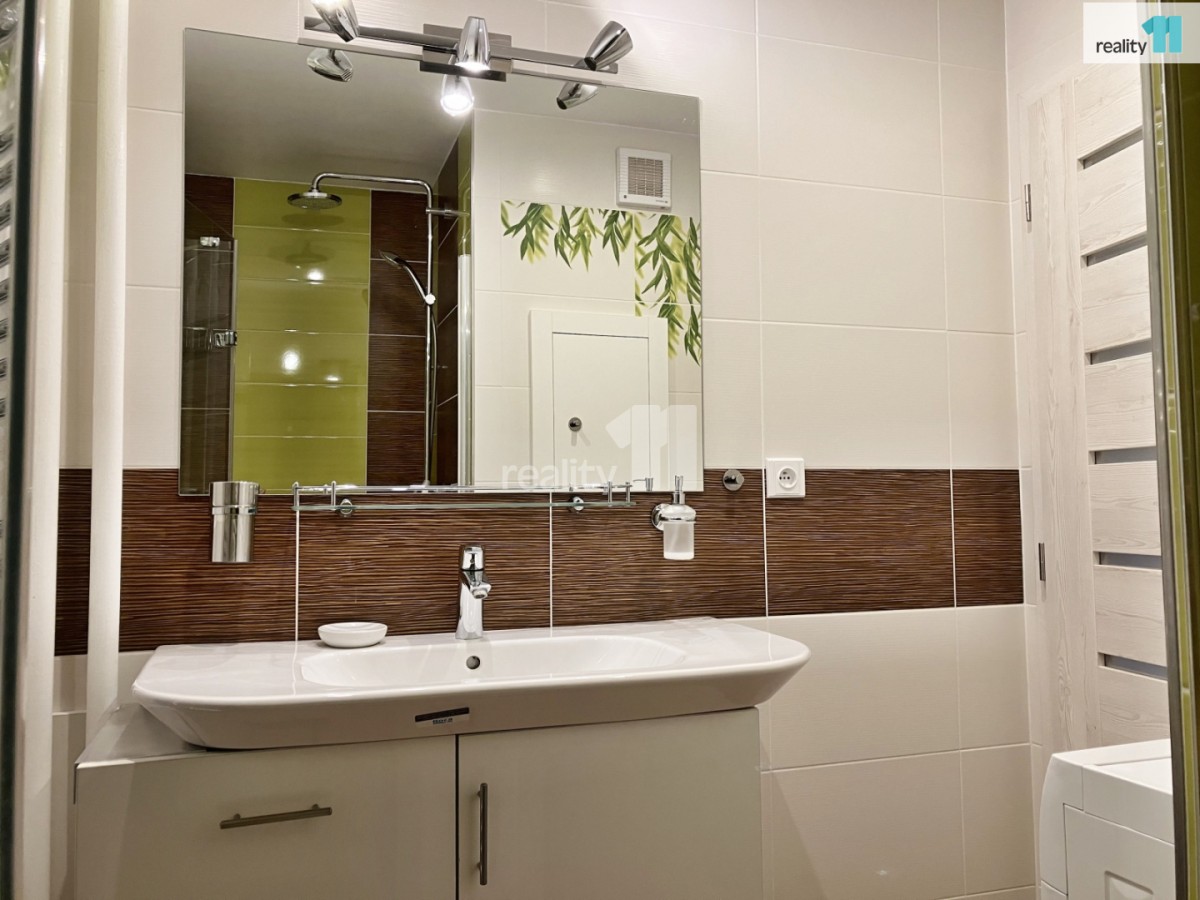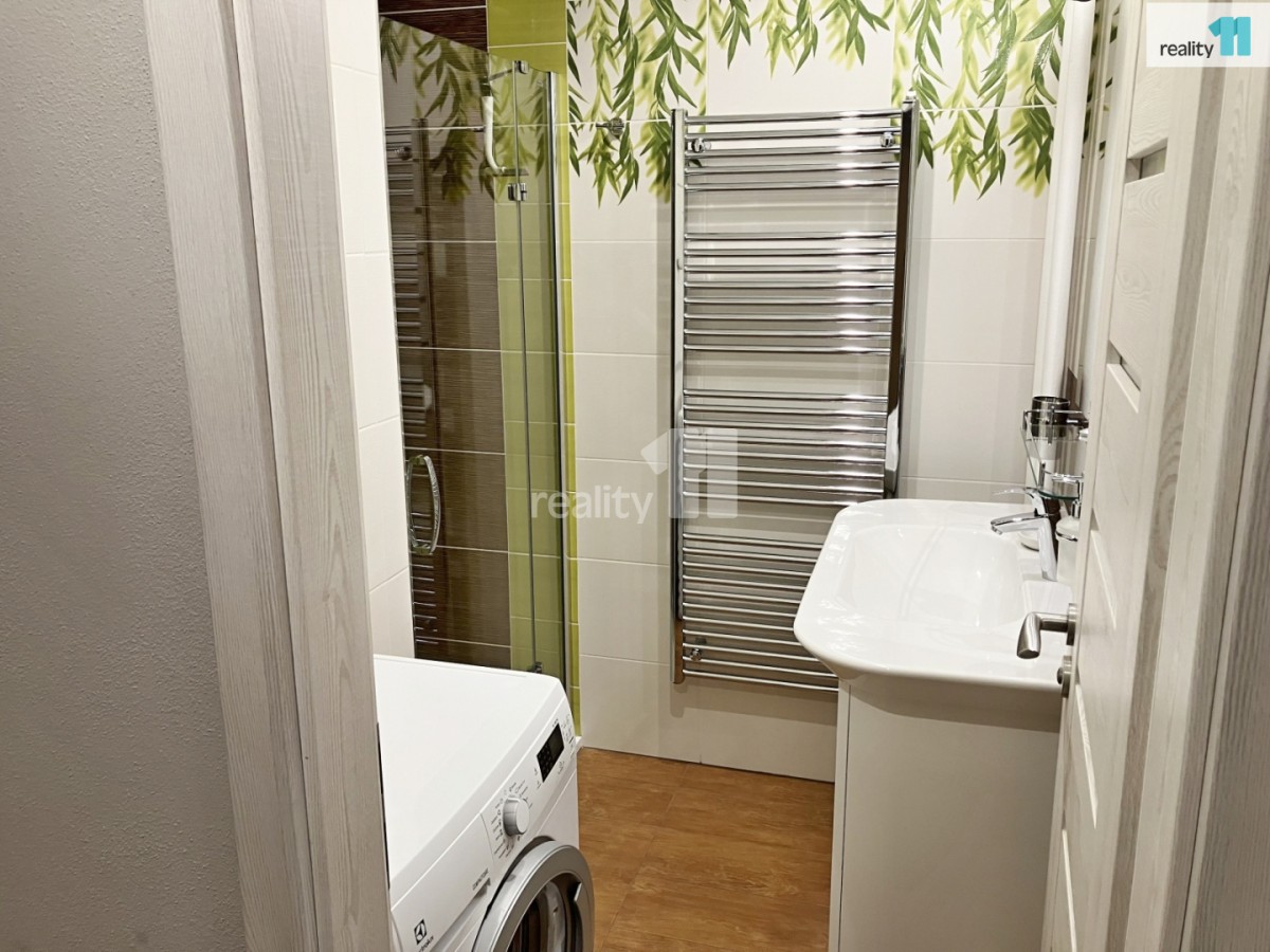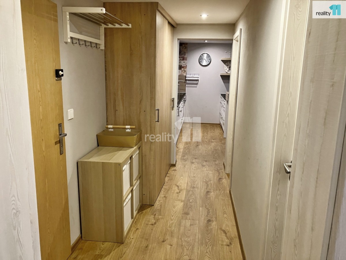 Prostorný byt prošel kompletní rekonstrukcí a změnou dispozice - nová elektroinstalace, omítky, plastová okna, podlahy, dveře, kvalitní kuchyňská linka s barovým pultem a vestav. spotřebiči (el. varná deska, el. trouba, odsavač par, myčka nádobí, lednice s mrazákem), nová kvalitně zařízená koupelna se sprchovým koutem a pračkou, samostatné sociální zařízení WC s umyvadlem, chodba s vestav. skříněmi.