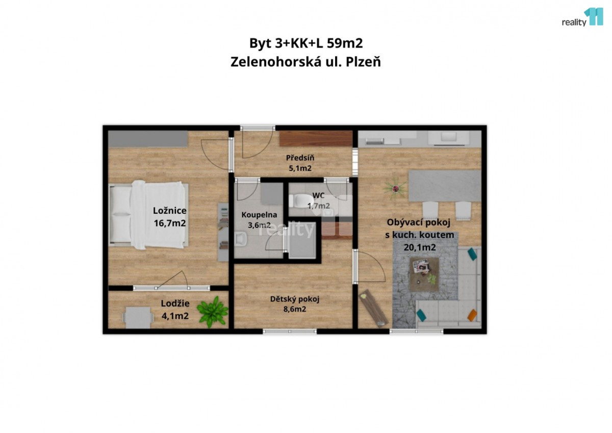 Pronájem bytu 3+kk, 59 m2 - Zelenohorská, Plzeň, okr. Plzeň-město (již není v nabídce)