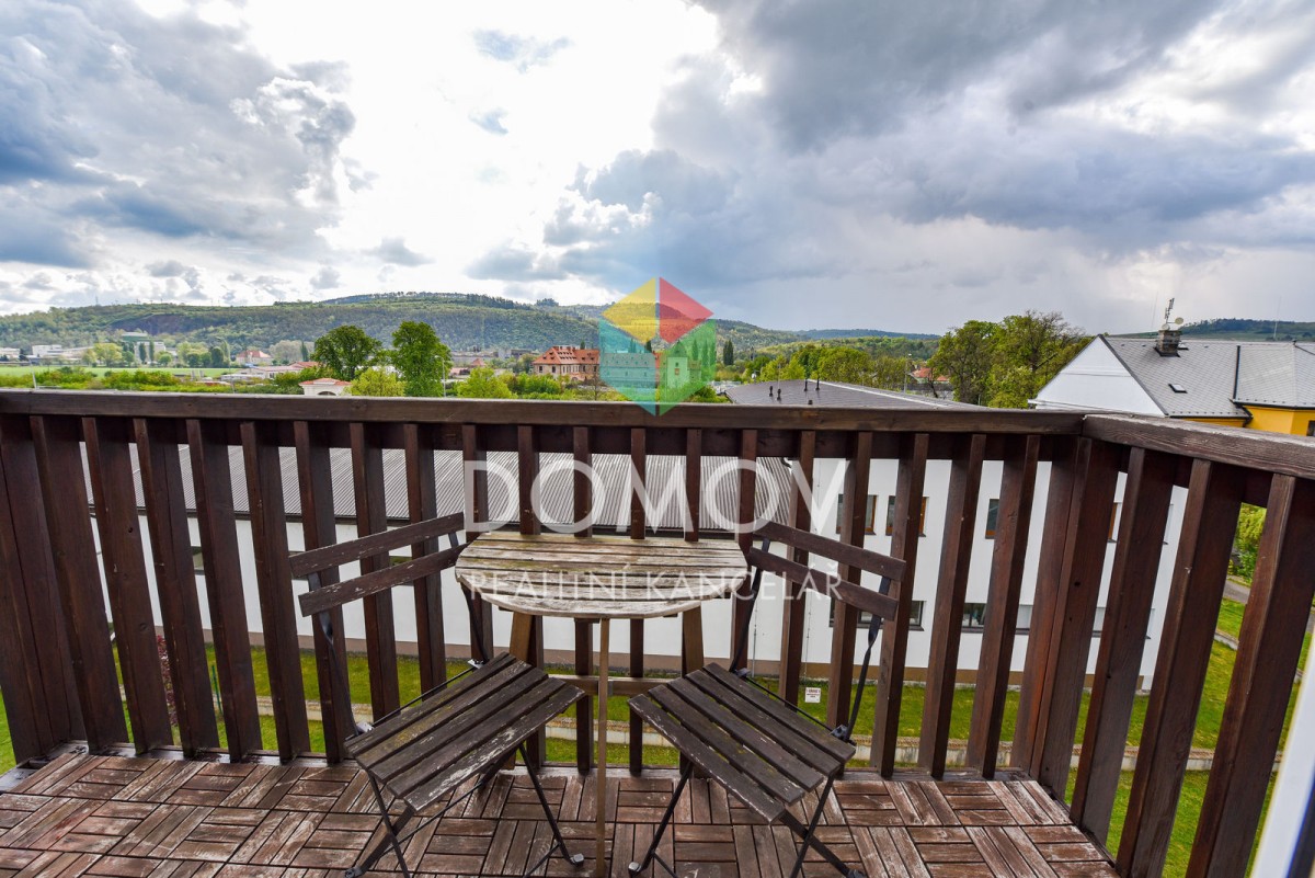 Byt působí světle, má balkon s pěkným výhledem.