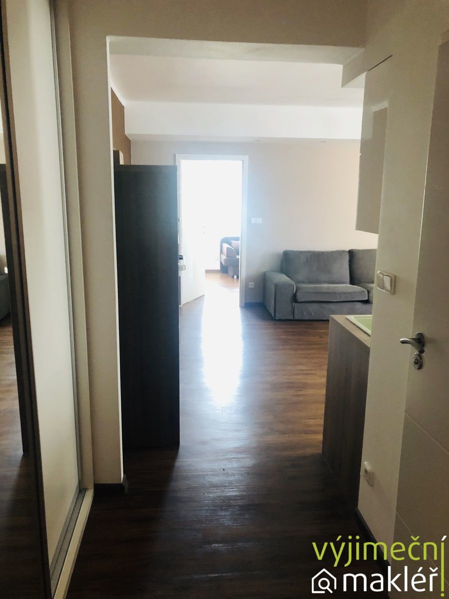Byt zůstává z větší části vybaven - velká šatní skříň v chodbě, kuchyňská linka s vestavnými spotřebiči, vestavná lednice s mrazákem, vestavná mikrovlnná trouba a trouba na pečení, jídelní sezení, dvojlůžková postel dělaná na míru v ložnici a televizor. V dalším pokoji je velká šatní skříň, psací stůl, rozkládací gauč. Ve všech oknech jsou bílé žaluzie.