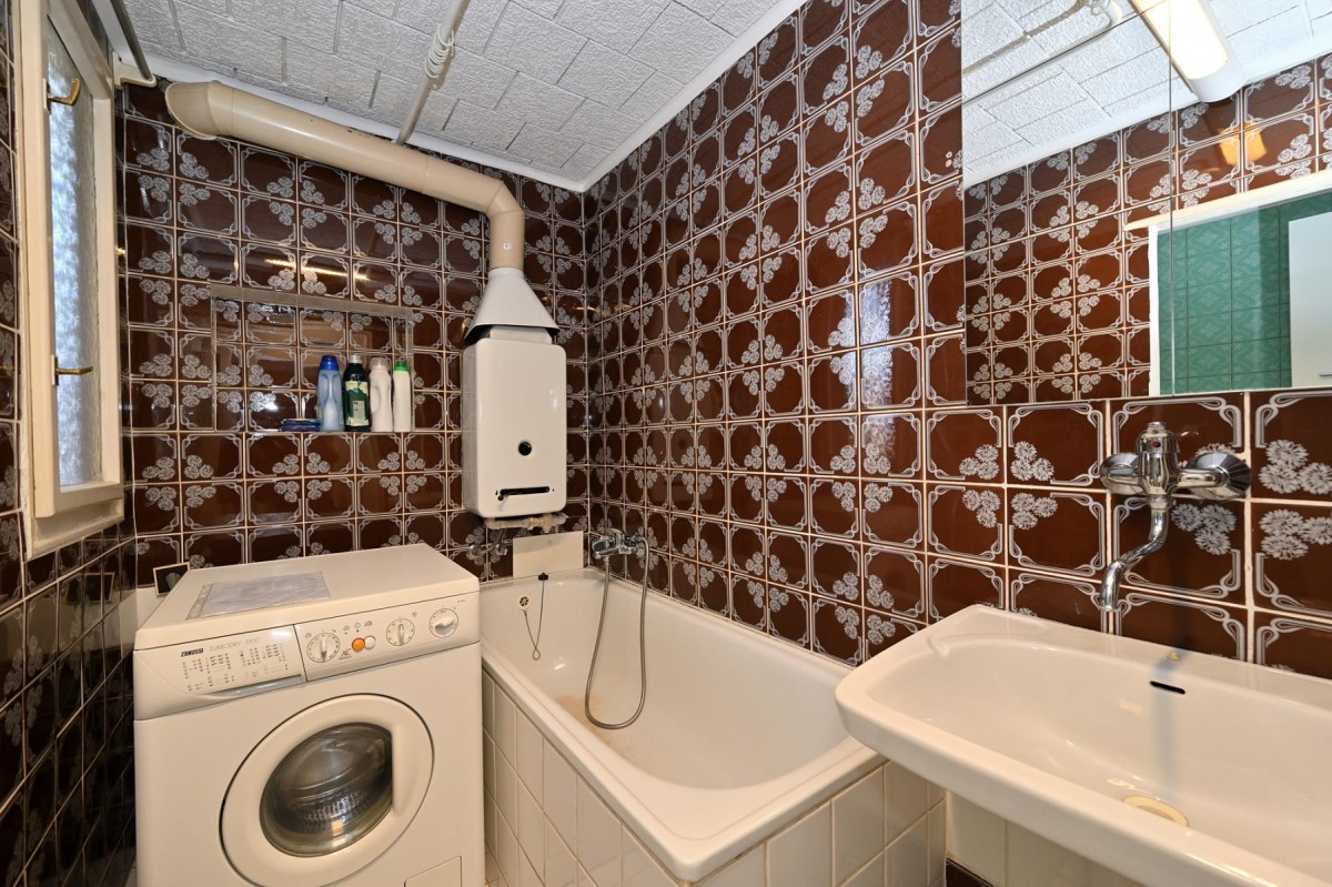 Starší koupelna s vanou, nová pračka, toaleta je zvlášť. V chodbě je vestavěná skříň.