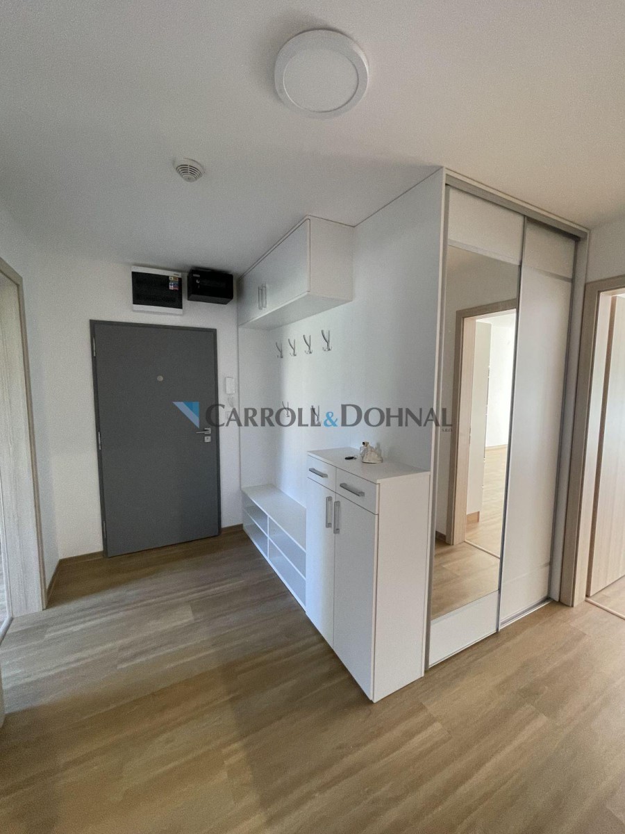 Jednotku tvoří předsíň s vestavěnou skříní, ze které vstoupíte do všech dalších místností. Byt má dvě samostatné ložnice , kuchyňský kout s linkou vyrobenou na míru je vybaven moderními spotřebiči, včetně lednice, myčky, trouby, mikrovlné trouby, varné desky a digestoře. Obývací pokoj s balkonem je orientován na jih, ve francouzských oknech jsou elektricky ovládané venkovní žaluzie. V koupelně s vanou je prostor na pračku. Toaleta s umyvadlem je samostatná.