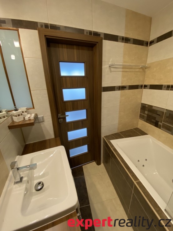 Ve spolupráci s architektonickým studiem byl rekonstruován byt 3+kk nacházející se na ulici Francouzská v Kopřivnici, který Vám nyní nabízíme k pronájmu. Do bytu se vstupuje pr...ostornou chodbou, z níž se vchází do obývacího pokoje, dětského pokoje, do ložnice a na toaletu. Prostorný obývací pokoj je propojen s kuchyní. Součástí kuchyňské linky jsou vestavěné spotřebiče Whirlpool (indukční varná deska, dvě lednice, mrazák, elektrická trouba, mikrovlnka, myčka, digestoř). Z obývacího pokoje vybaveného obývací stěnou a televizí se vchází na prosklenou lodžii a do koupelny. Prostor mezi kuchyní a obývákem je oddělen jídelním stolem se židlemi. Dostatek úložného prostoru zajišťují skříně v ložnici, na chodbě a v dětském pokoji. V koupelně je hydromasážní vana Teiko se zástěnou, vestavěný regál a pračka. Byt se nachází v VI. NP osmipodlažního revitalizovaného panelového domu a je převážně orientován na jižní stranu s působivým výhledem na Červený kámen.