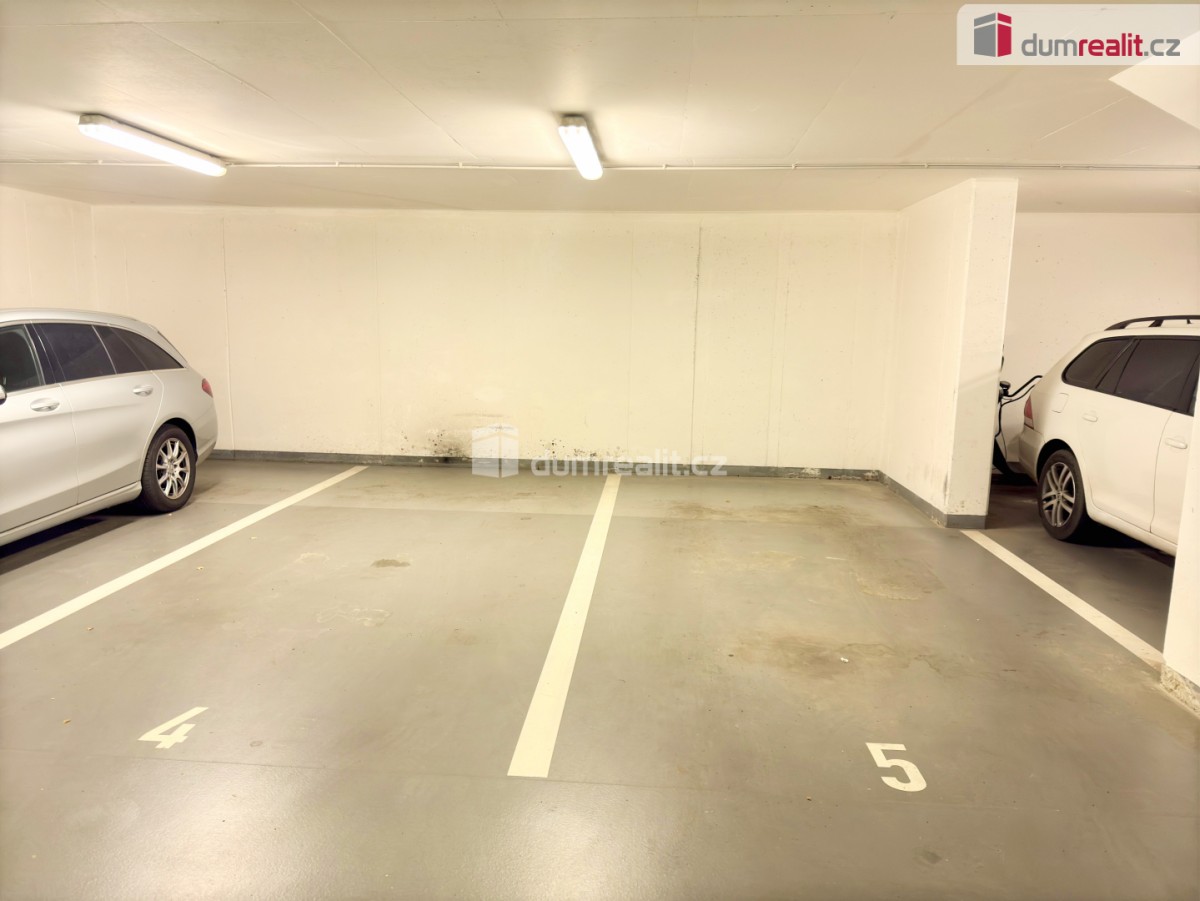 Parkovací místo k byti se nachází v suterénu v podzemních garáži pod bytem, snadný přístup schodíštěm či výtahem, což je velkou výhodou, protože v ulici je modrá zóná.