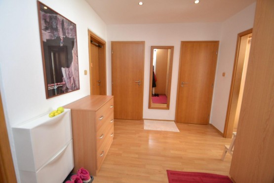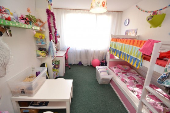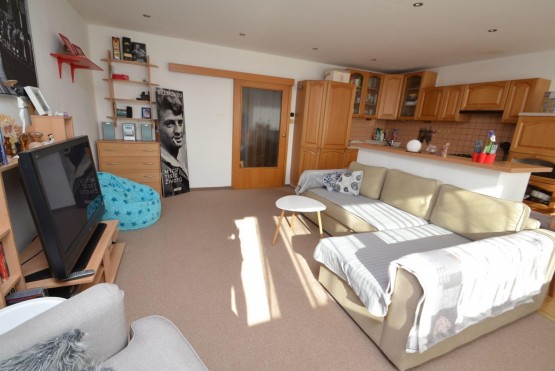 Příjemný prostorný byt 3kk v panelovém domě po rekonstrukci s lodžií přístupnou z obývacího pokoje ze které je volný výhled do ...zeleně. Byt je vybaven kuchyňskou linkou, plynovou varnou deskou el. troubou, myčkou nádobí, vestavěnou ledničkou s mrazákem, vestavěnou skříní v předsíni. Nábytek na fotografiích je nájemníka, možnost odkupu.