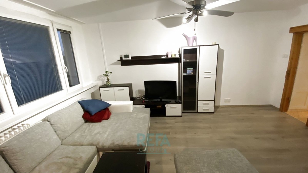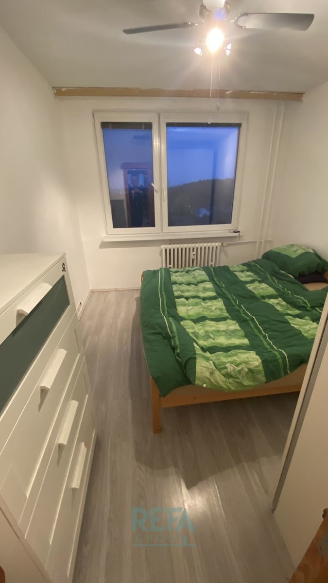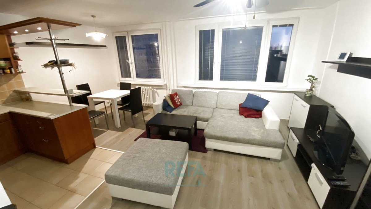Částečně vybavený rekonstruovaný byt ...ý kout">3+kk (68m²) se nachází ve 4. patře (ze 7) panelového domu včetně výtahu. 2 ložnice (umístěné na severovýchod) - jedna větší se šatní skříní, jedna menší s manželskou postelí, komodou a šatní skříní, koupelna s vanou a pračkou, samostatné sociální zařízení WC se závěsnou skříňkou, jedna komora v bytě a druhá menší na chodbě přímo před bytem, prostorný obývací pokoj (situovaný na jihozápad) s kuchyň. koutem (lednice s mrazákem, mikrovlnná trouba, plynový sporák s elektrickou troubou a vestavným odsávačem, rychlovarná konvice), s rozkládacím gaučem a komodami, v chodbě 2 vestavné skříně a další skříň a botník v zádveří + podhledový úložný prostor.