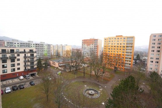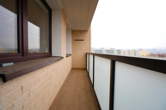 Byt se nachází v 7. patře z 11 zrekonstruovaného panelového domu se dvěma výtahy. Na patře je uzamykatelná společná chodba pro tři byty, což zvyšuje soukromí i bezpečí. K bytu náleží sklepní kóje (cca 1 m2).