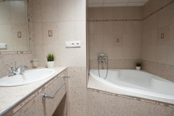 - koupelna se dvěma umyvadly a rohovou vanou