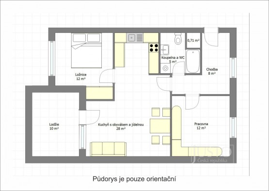 Obývací pokoj s jídelnou a kuchyní 28 m²
