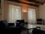 Plně zařízený, prostorný byt 3+kk o rozloze 73 m2 je situovaný v dobře udržovaném domu včetně výtahu v ulici Hroznová, Praha 1 - Malá Strana. Tento vkusně zařízen...ý byt s orientálními koberci a renesančními klenbami se skládá z obývacího pokoje s jídelním stolem a s originálními barokními stropy, kuchyně se všemi spotřebiči, 2 ložnic, 2 koupelen (1 s rohovou vanou, druhá se zapuštěnou kachlovou vanou), komory a vestavěné skříně v hale. Dům se nachází v oblíbené rezidenční části s výbornou dopravní dostupností a občanskou vybaveností. Karlův most a řeka Vltava pár kroků od domu. Služby a energie se platí zvlášť.